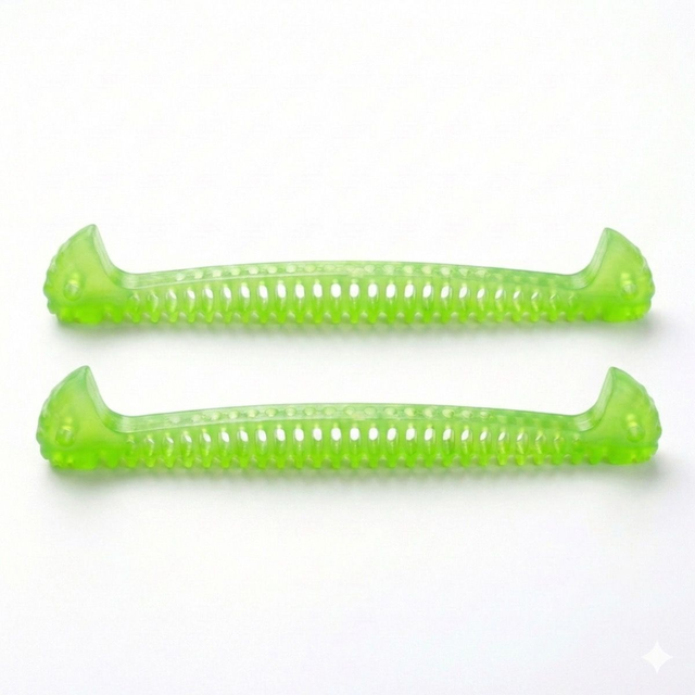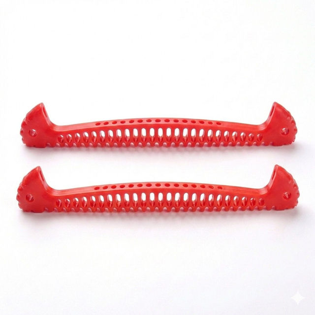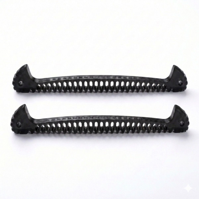 Dessa flexibla skridskoskydd är designade för att klara det nordiska klimatet och skyddar dina skenor när du går till och från isen. Till skillnad från stela plastskydd är TPE-gummi skönare att gå med, tystare och spricker inte i kyla.